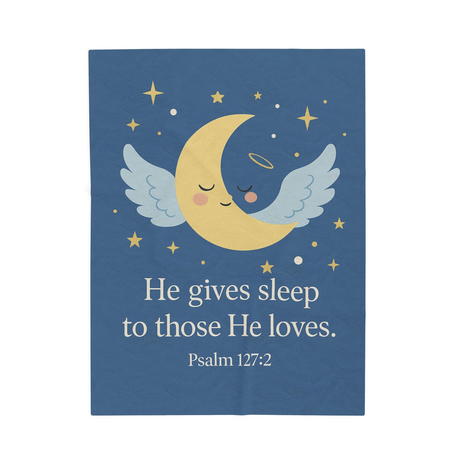 Christian Baby Blanket — "He Gives Sleep to Those He Loves" Velveteen Plush Nursery Throw
