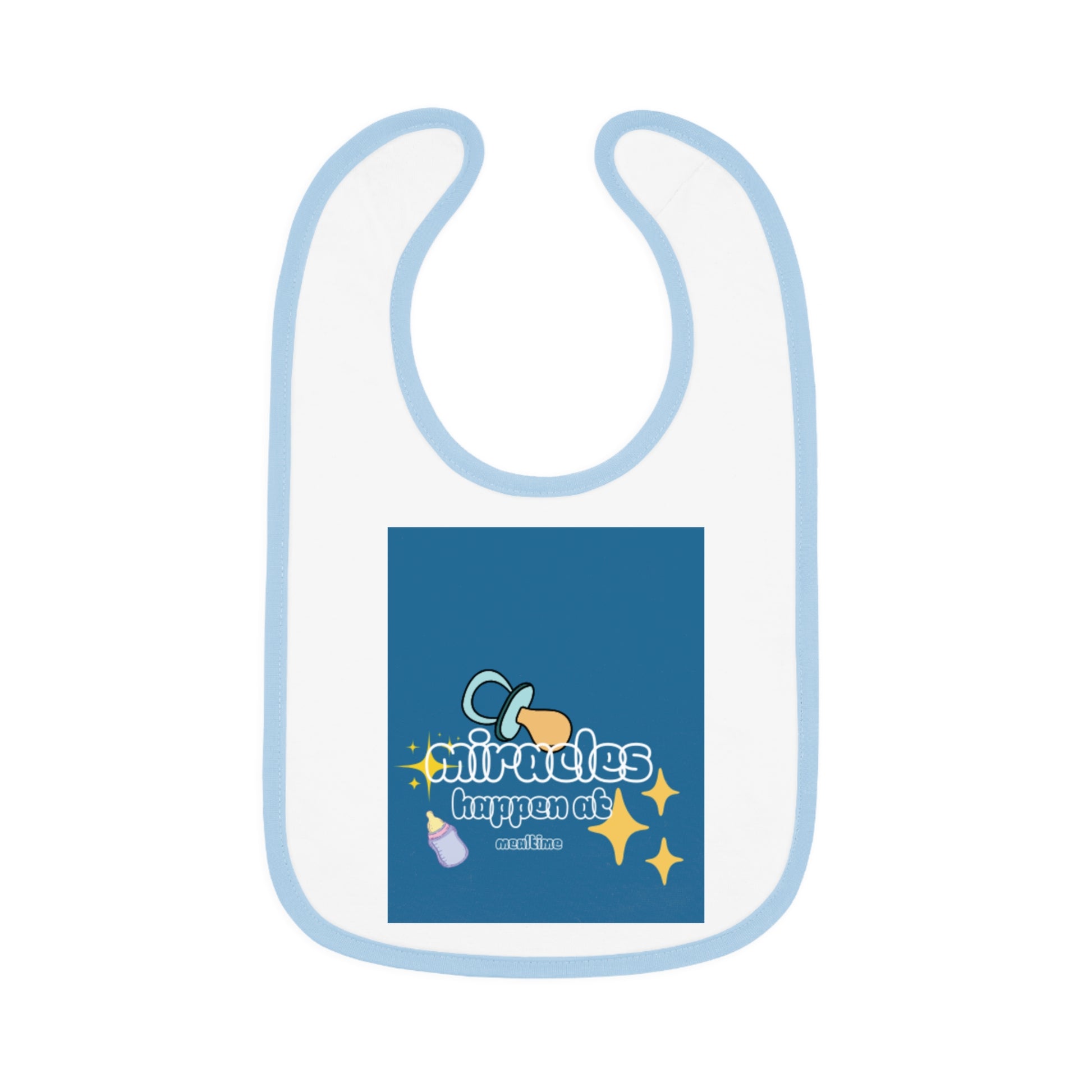 Miracles Happen Baby Bib - Cute Contrast Trim Jersey for Feedings